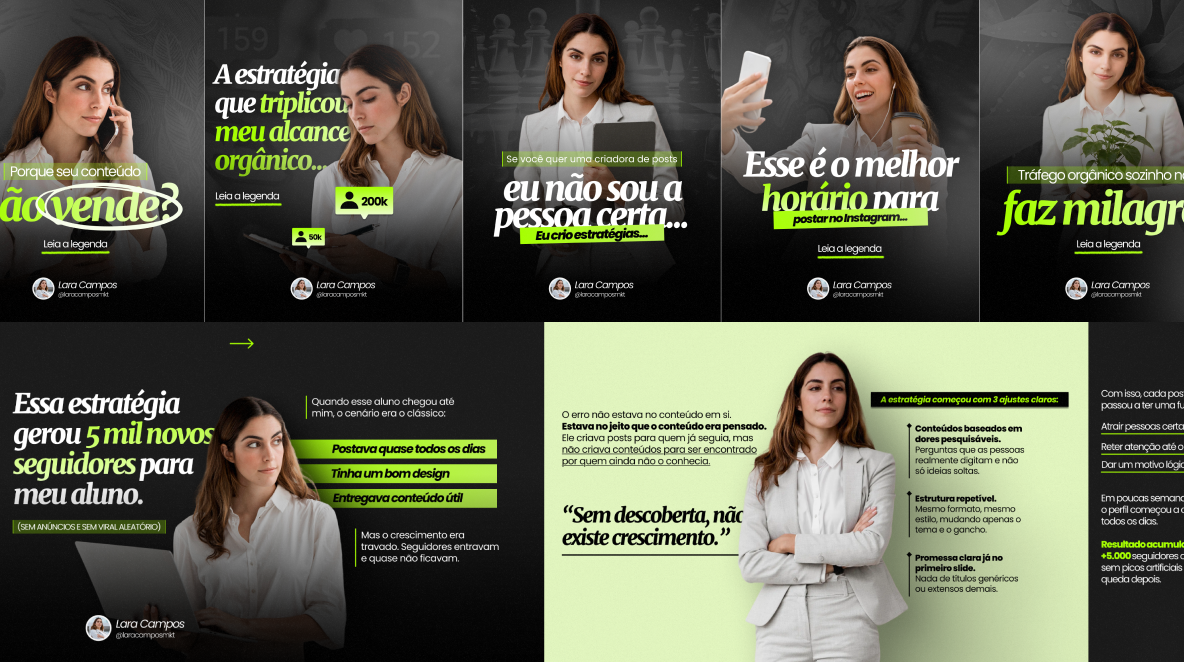 Criação de artes estratégicas para redes sociais, identidade visual completa, logotipos, impressos, materiais promocionais, apresentações e muito mais!